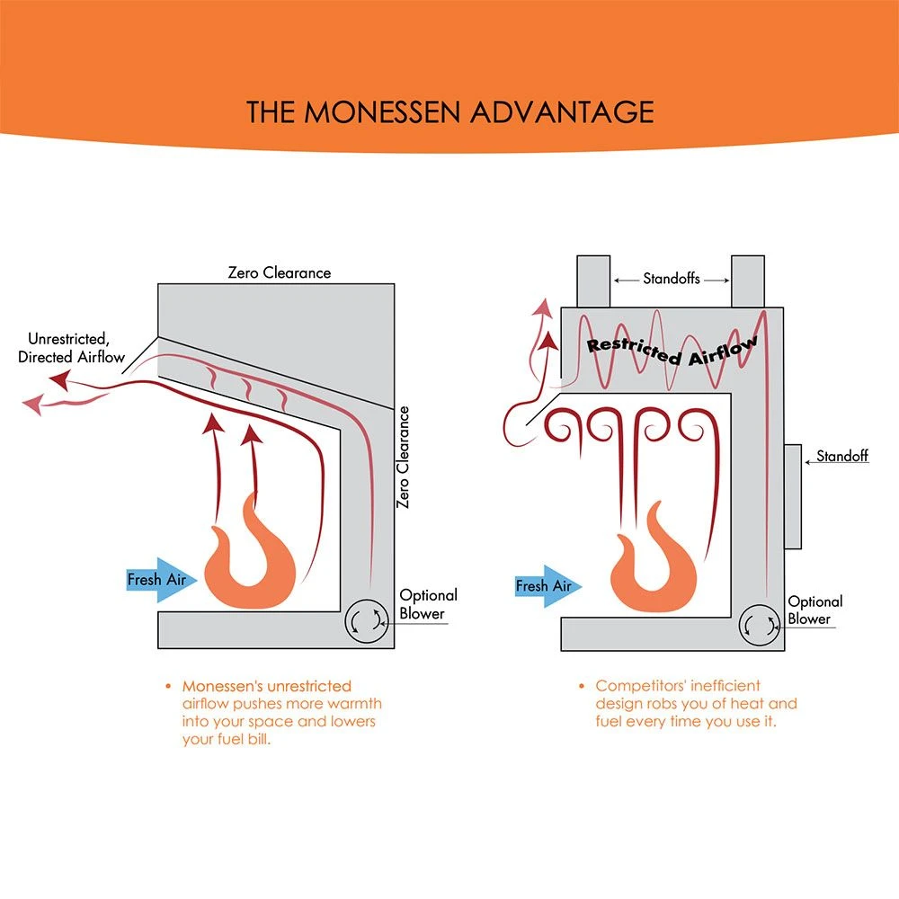 - Zero clearance design allows for versatile installation and design flexibility