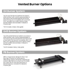 Real Fyre G45 Vented Gas Fireplace Burner, ANSI Certified, Stainless Steel provides a high quality gas burner intended for use with a log set. The heavy duty stainless steel construction ensures a long lasting and durable burner system that can be used indoor/outdoors while the innovative design provides a realistic flame presence for a superior fire. With both natural gas and propane options available and multiple sizes to choose from, the G45 series burner provides an excellent choice to fill your fireplace enclosure with a beautiful and enhancing flame.