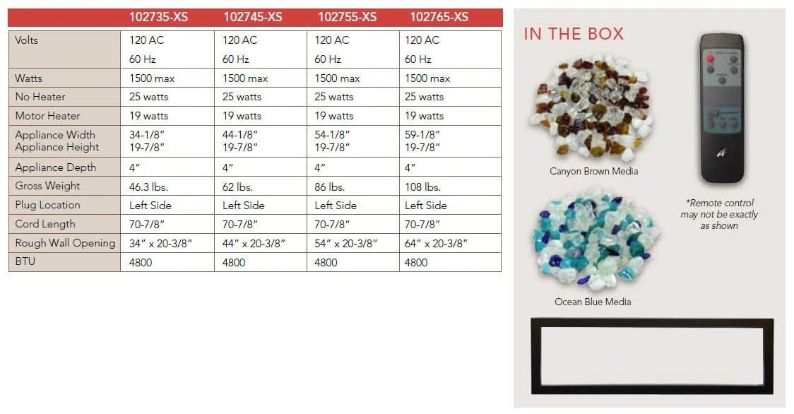- FIRE & ICE Flame Presentation – Features Amantii’s award-winning flame presentation for a visually stunning appearance and multiple flame color options